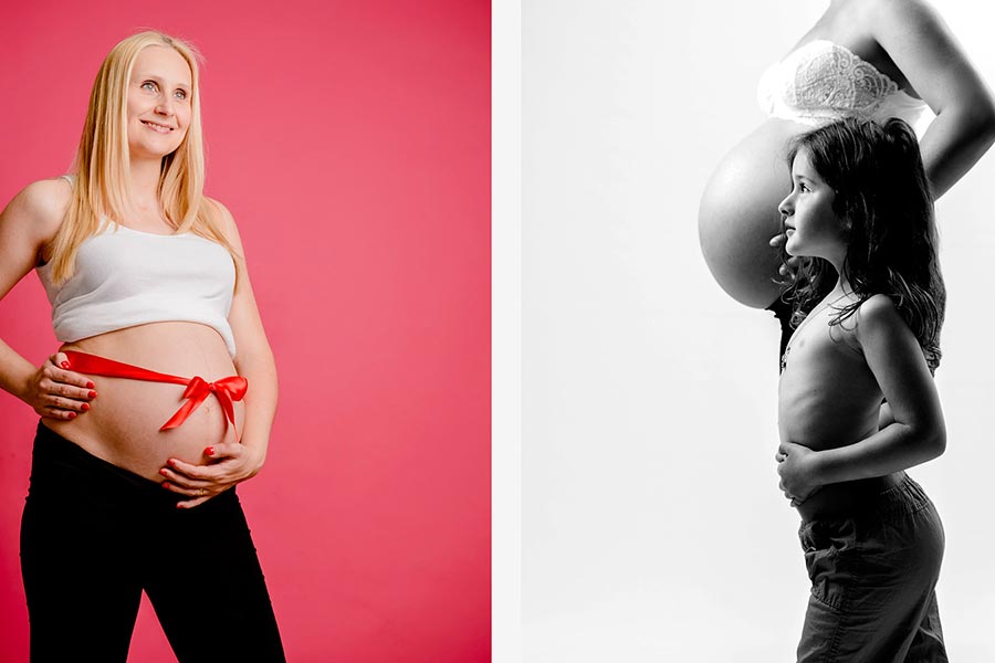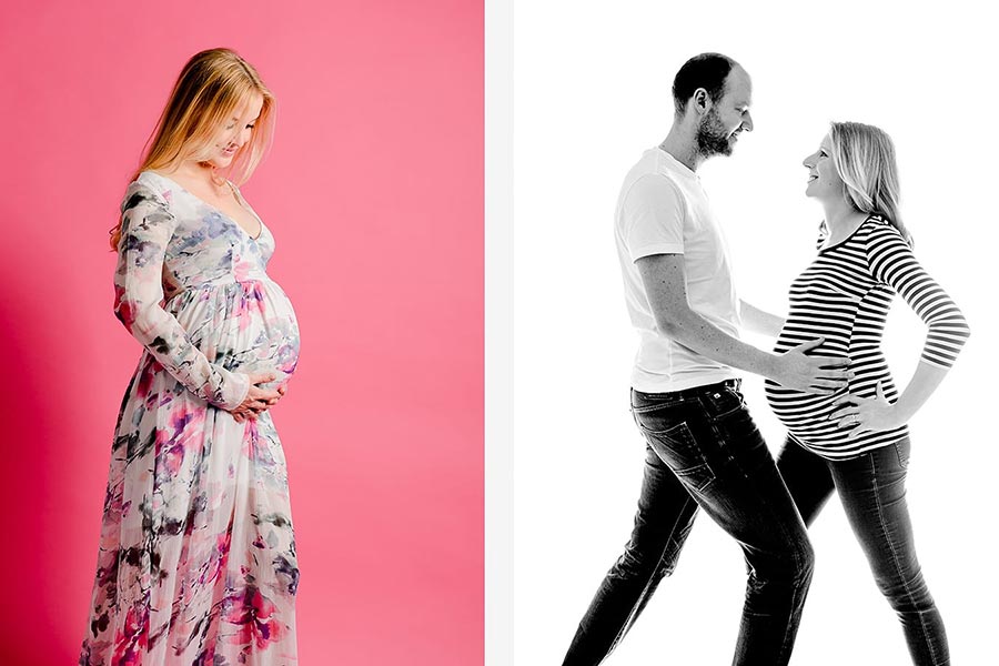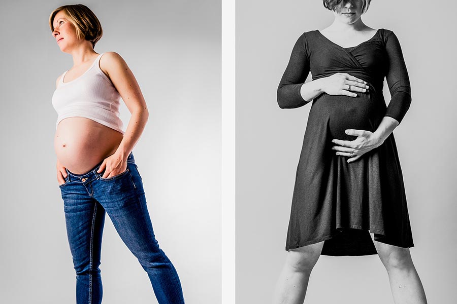 Oft fotografieren wir Babybauchfotos im Studio, aber jeder andere Ort ist möglich, vielleicht daheim oder im Park um die Ecke?