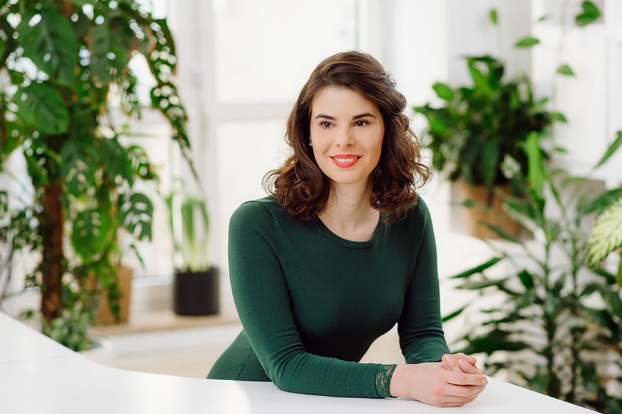 Farben verleihen Businessfotos eine ansprechende Frische. Sei es durch Outfits, Möbel oder Pflanzen – Farbe kreiert eine freundliche, angenehme Atmosphäre, die sowohl Einzelpersonen als auch Coworking-Spaces oder Großraumbüros perfekt zur Geltung bringt.