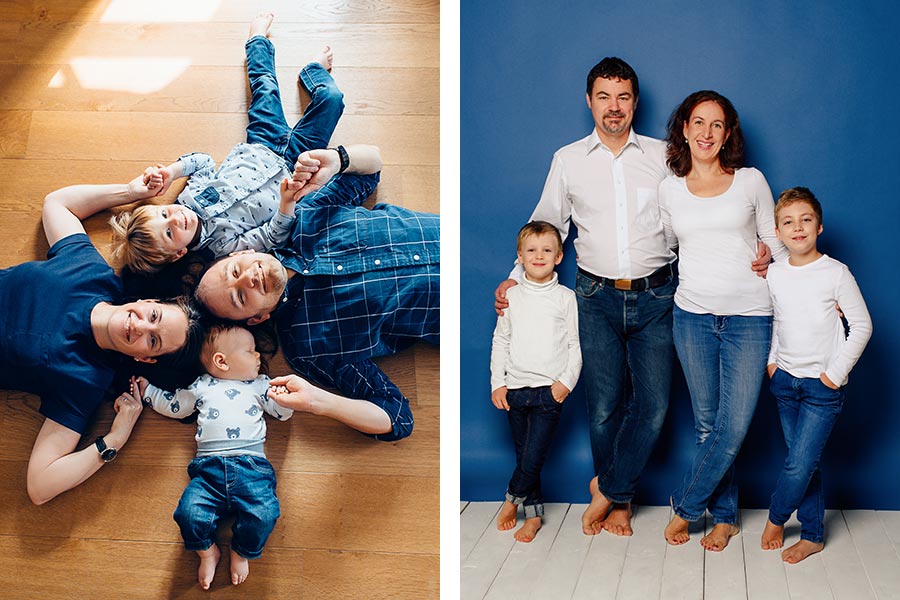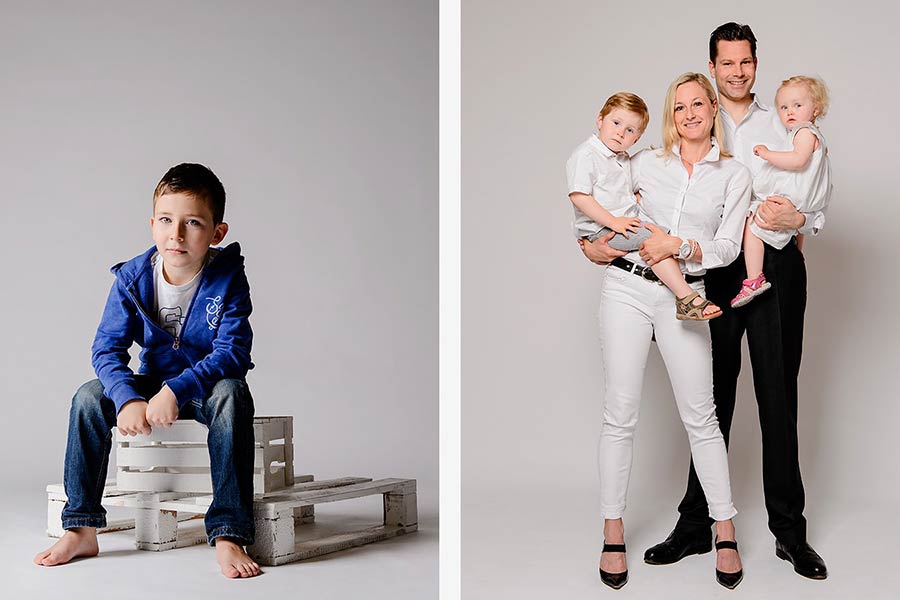 Ob ihr nur zu dritt seid (Mama, Papa, und der kleine Spatz) oder schon eine richtige Bande, gerne könnt ihr zu uns kommen, um euch fotografieren zu lassen. Für jeden finden wir das richtige Paket. Klärt im Vorfeld ab, wie viele verschiedene Varianten und Konstellationen ihr gerne fotografiert haben möchtet und teilt diese eurer Fotografin mit. Zu dritt ist der Termin etwas anders zu planen, als mit einer großen Gruppe, aber wenn ihr im Vorfeld alles gut organisiert, steht eurem Fotoerlebnis bei uns nichts mehr im Weg. Egal, wie viele Personen ihr seid, sprecht euch bezüglich des Outfits, der Farbe und der Wünsche innerhalb eurer Gruppe gut ab, von uns bekommt ihr dazu ein paar Infos im Vorfeld.