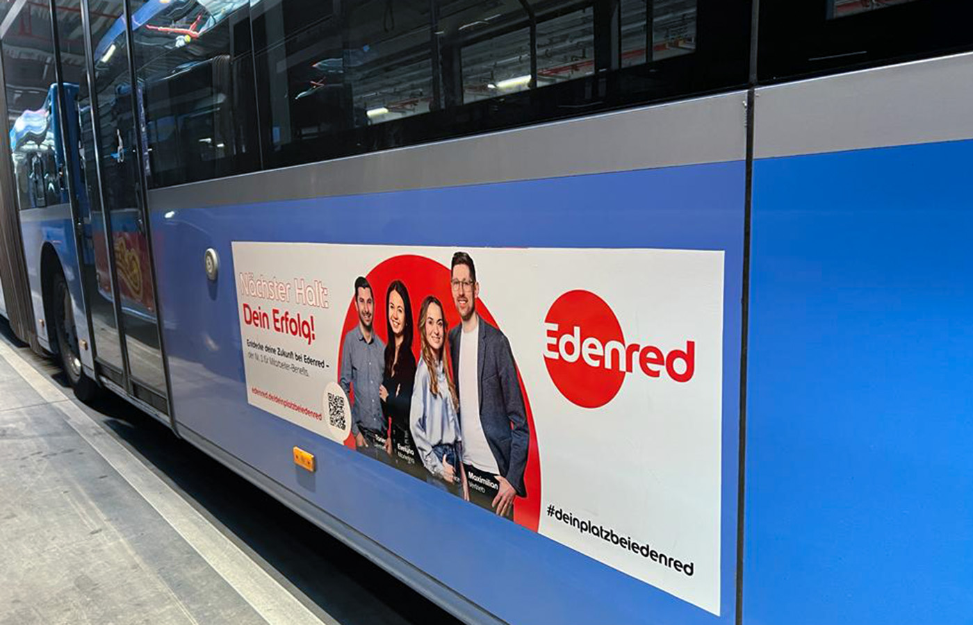 Und wie könnte man besser für einen Arbeitgeber werben, der in ganz Deutschland für mehr Mitarbeiterwohl einsteht, als genau da, wo viele Menschen unterwegs sind? Genau: direkt auf dem Arbeitsweg – in U-Bahnen, an Bussen und Litfassäulen. Besser kann man für das eigene Mitarbeiter-Recruting nicht werben.